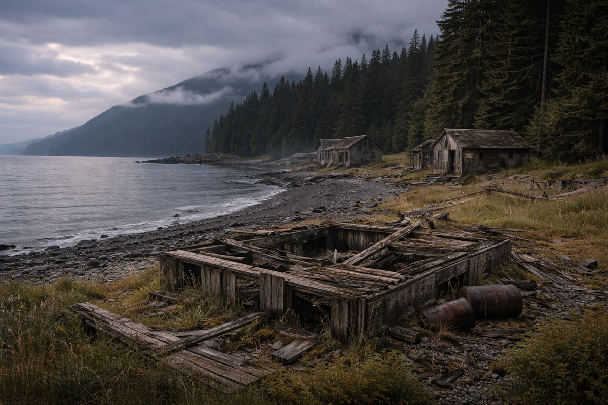 On the rugged southern edge of the Kenai Peninsula, overlooking cold waters and dense forest, the former fishing village of Portlock once supported a small but active community. Established in the early 20th century and officially known as Port Chatham, the settlement functioned as a seasonal hub for fishing, trapping, and timber work. By the mid twentieth century, it was completely abandoned.